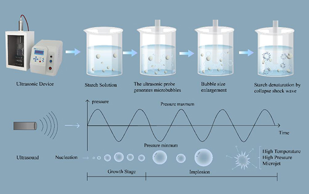 超声波辅帮淀粉改性是一种新兴的绿色物理方式,它操纵空化效应和机械剪切感化淀粉的结晶区域,改变颗粒形态,添加比概况积,从而无效提拔淀粉的消融性、亲水性和功能特征。超声波改性避免了化学试剂的利用及生物催化剂的残留,更平安且环保。